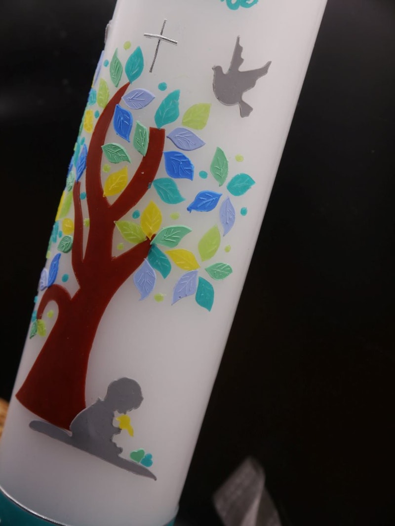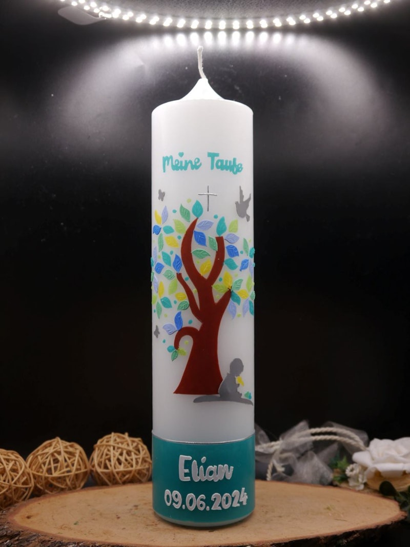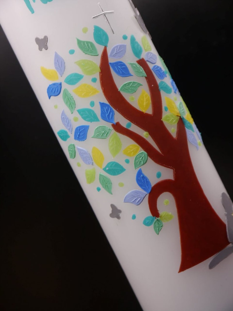Einzigartige Taufkerze, Kommunionkerze mit Lebensbaum: Individuell & Handgemacht
